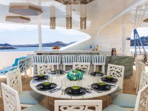 Блюда всегда готовятся из свежих продуктов, по возможности, с местных ферм на островах. Особые диетические потребности никогда не являются проблемой для наших шеф-поваров, а также доступно детское питание. Ваш бортовой шеф-повар готовит три вкусных, питательных блюда в день: завтрак и обед подаются в форме шведского стола, а более элегантный ужин подается в обеденной зоне на свежем воздухе на террасе, если позволяет погода.