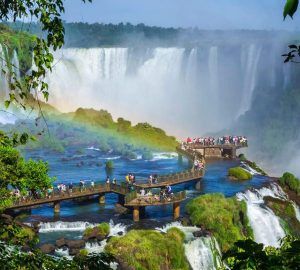 Arrival in Foz do Iguacu airport. Prior to your arrival you will be taken to an excursion to the Brazilian side of the falls. A tranquil and calming walk along the edge of the falls provides the most spectacular view you have ever seen; over 250 falls overflowing with millions of gallons of water racing furiously down straight from the Amazon River. The sunlight flashing off the water has a mesmerizing effect of creating hundreds of rainbows as far as an eye can see. It is almost hard to believe, such a breathtaking beauty of the rainforest paradise.
