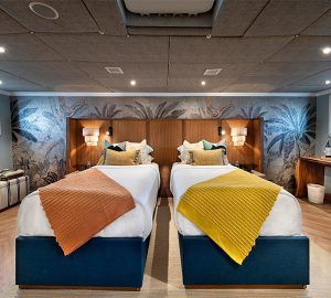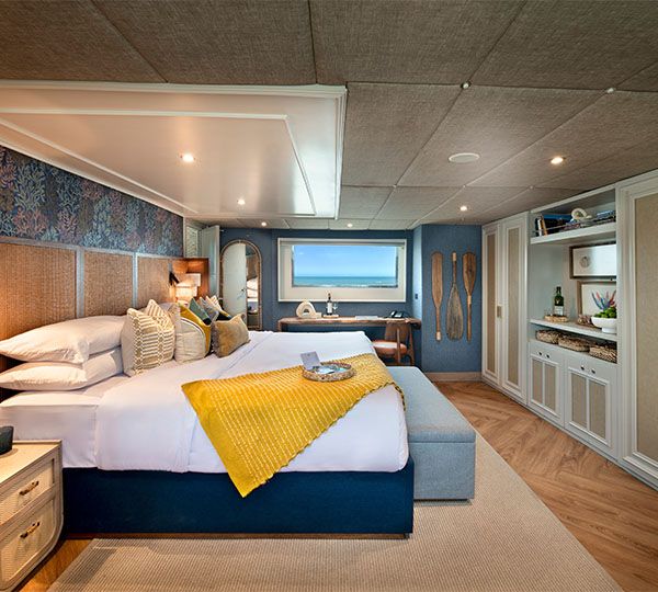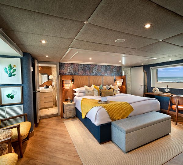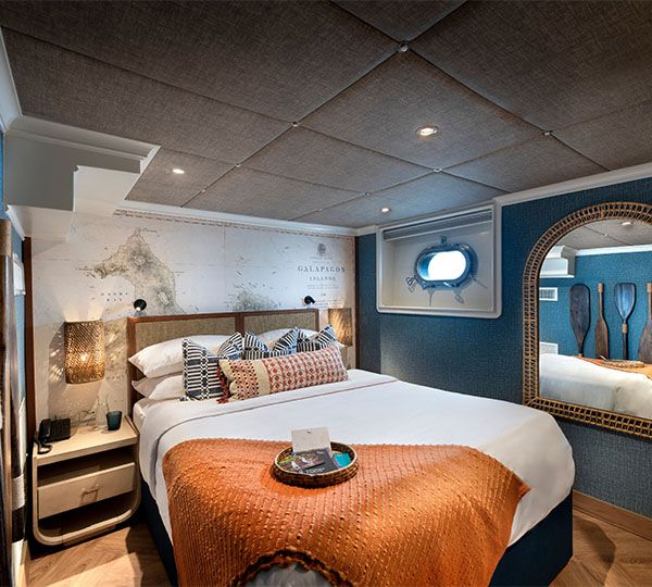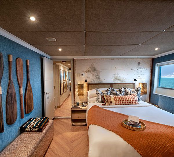 На борту Galapagos Explorer натуральные материалы и богатые фактуры, отражающие местную культуру, гармонично сочетаются, создавая теплую и уютную атмосферу. Деревянные элементы декора и нейтральные тона повсюду. Панорамные окна от пола до потолка наполняют просторные гостевые зоны естественным светом, открывая захватывающие виды на постоянно меняющиеся ландшафты и чудеса дикой природы Галапагосских островов. Внутренние и открытые обеденные зоны и зоны отдыха гарантируют гостям широкий выбор. А открытая палуба для загара, расположенная на верхней палубе, может похвастаться роскошной гидромассажной ванной и комфортной зоной отдыха, идеально подходящей для отдыха после обеда. Тщательно оборудованные помещения с кондиционерами включают четыре великолепные каюты и два изысканных люкса с иллюминаторами или окнами. Ванные комнаты с роскошными душевыми и туалетными столиками дополняют пространство.