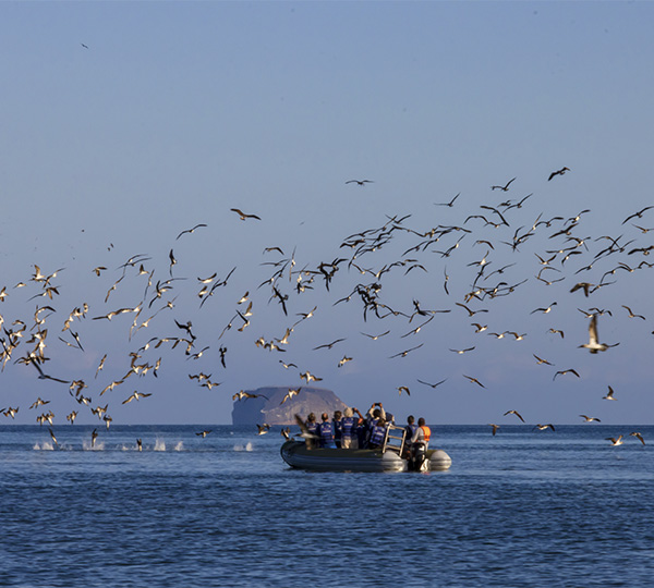 Исследуйте этот крошечный остров пешком и на лодке, чтобы увидеть замечательную дикую природу. Покатайтесь на панге, чтобы увидеть гнездящихся и кормящихся морских и береговых птиц. Обратите внимание на небольшую колонию голубоногих олуш, а также на два вида морских львов.