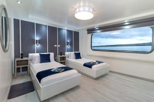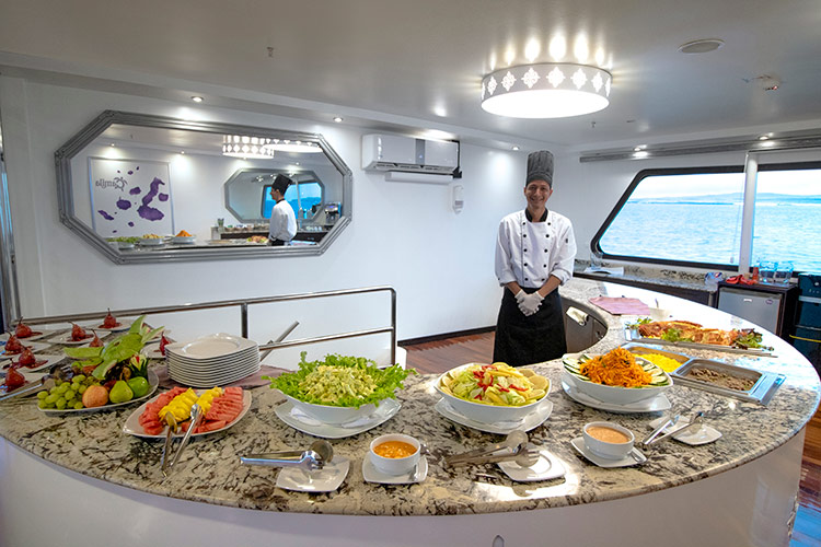 This cruise can comfortably accommodate 16 travelers who can choose 4, 5 or 8-day itineraries, visiting the most outstanding points in the islands, led by a certified bilingual naturalist guide and enjoying excellent service provided by crew members and a cruise director.