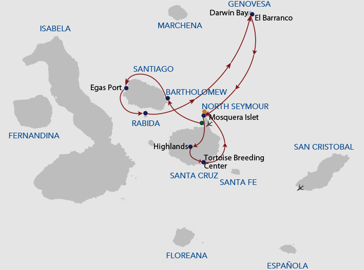 8-day Galapagos Cruise Itinerary "B"
