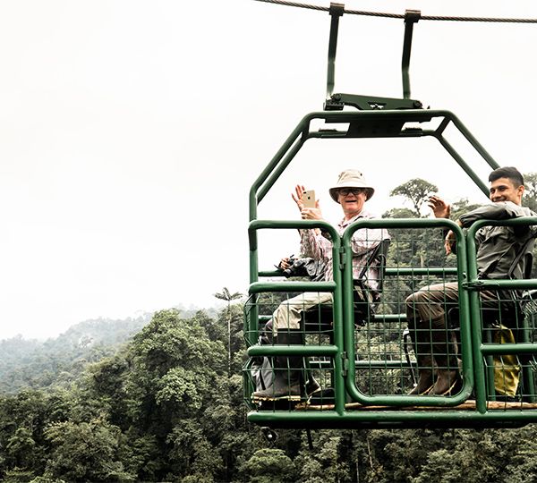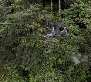 Расположенный недалеко от лоджа воздушный велосипед предлагает вам оригинальный и захватывающий способ исследовать полог леса вблизи. Он спроектирован специально для того, чтобы 2 человека могли пользоваться им одновременно. 1 человек крутит педали велосипеда, подвешенного на тросе, протяженность которого составляет около 200 м, пересекая ущелье и реку, протекающую между скалами и деревьями. Простой в использовании велосипед доступен детям старше 8 лет в сопровождении взрослого. Он предоставляет гостям возможность наблюдать естественный мир возле лоджа. Планируется установить несколько новых велосипедов в заповеднике.