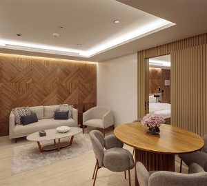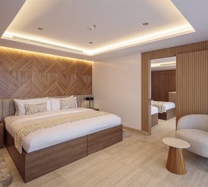 - Просторные люксы с собственными балконами, гардеробными, мини-баром и собственным джакузи