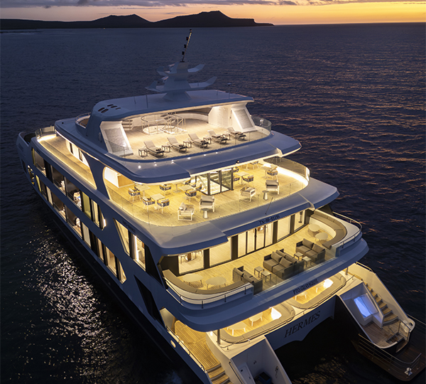 Hermes Mega Catamaran — первый ультра-роскошный круиз на Галапагосских островах. С вместимостью гостей до 20 человек Hermes предлагает непревзойденный опыт благодаря эксклюзивности, высококлассным удобствам и соотношению экипажа к гостю почти 1 к 1.